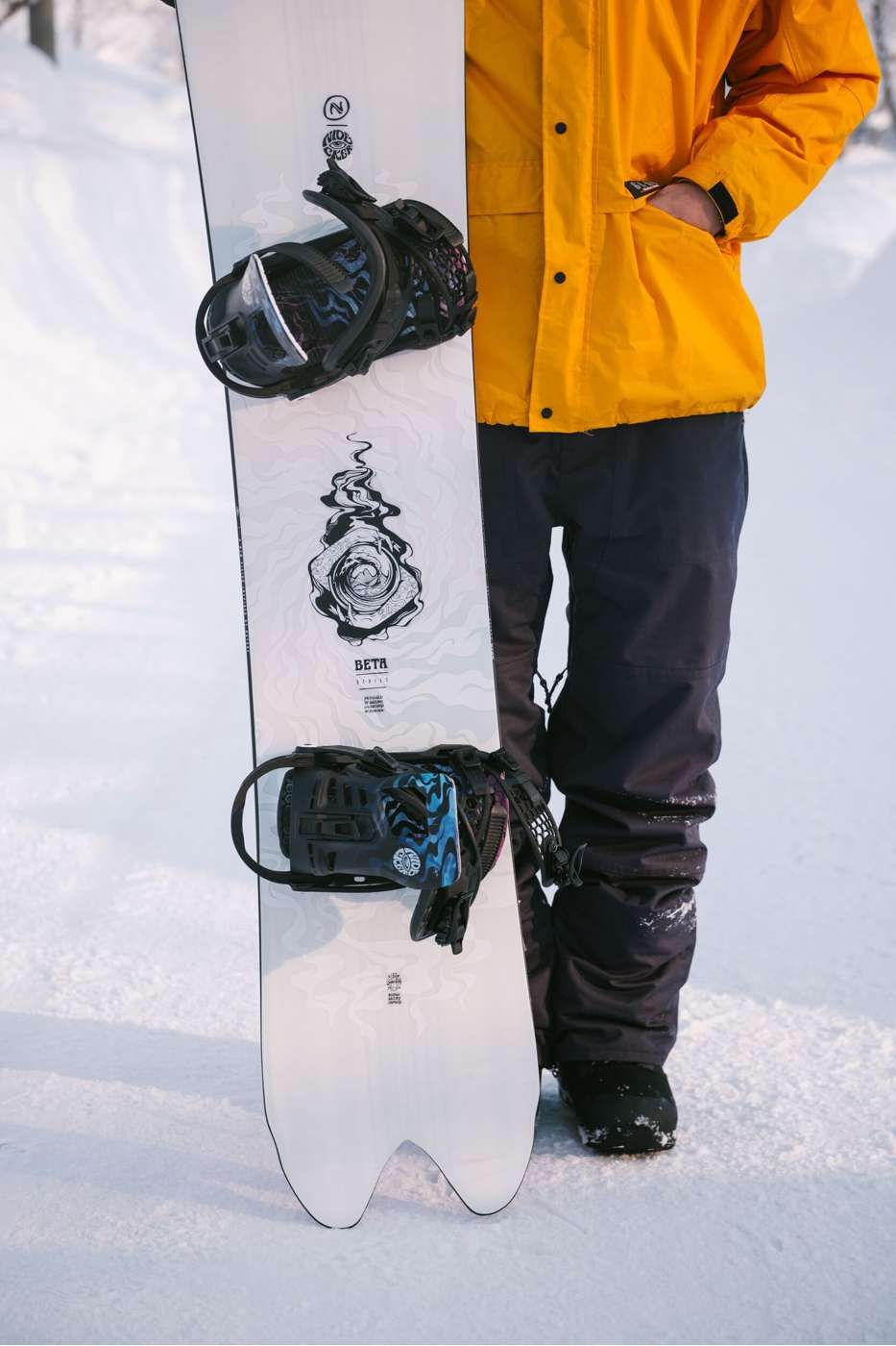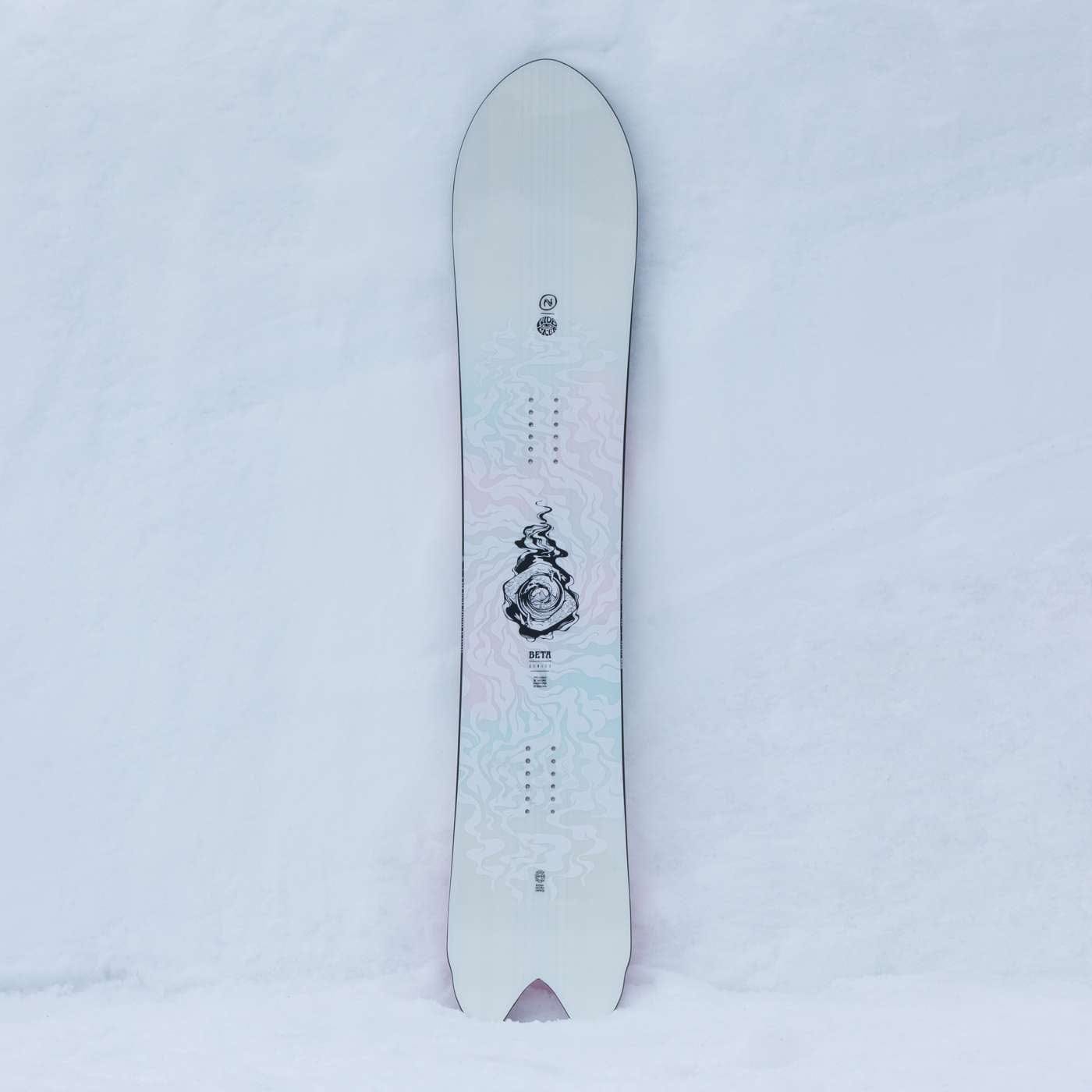 With a shape that borrows its curves from Mother Nature, the Beta brings effortless float and natural glide to the deepest of days.This board is the most powder-focused in our Biomimicry Series. It features a set-back stance, a generous spooned nose and a short swallowtail which work together to sink the rear while generating tons of lift up front. Its directional outline is designed to help you flow down gulleys, pillows and open bowls like water. At the heart of the Beta is our NDK Swiss core, made from the most sustainably-sourced timber, with targeted carbon material and an Absorbnid topsheet offering the perfect balance of edge response and dampening. As the saying goes: float like a butterfly, sting like a Beta!