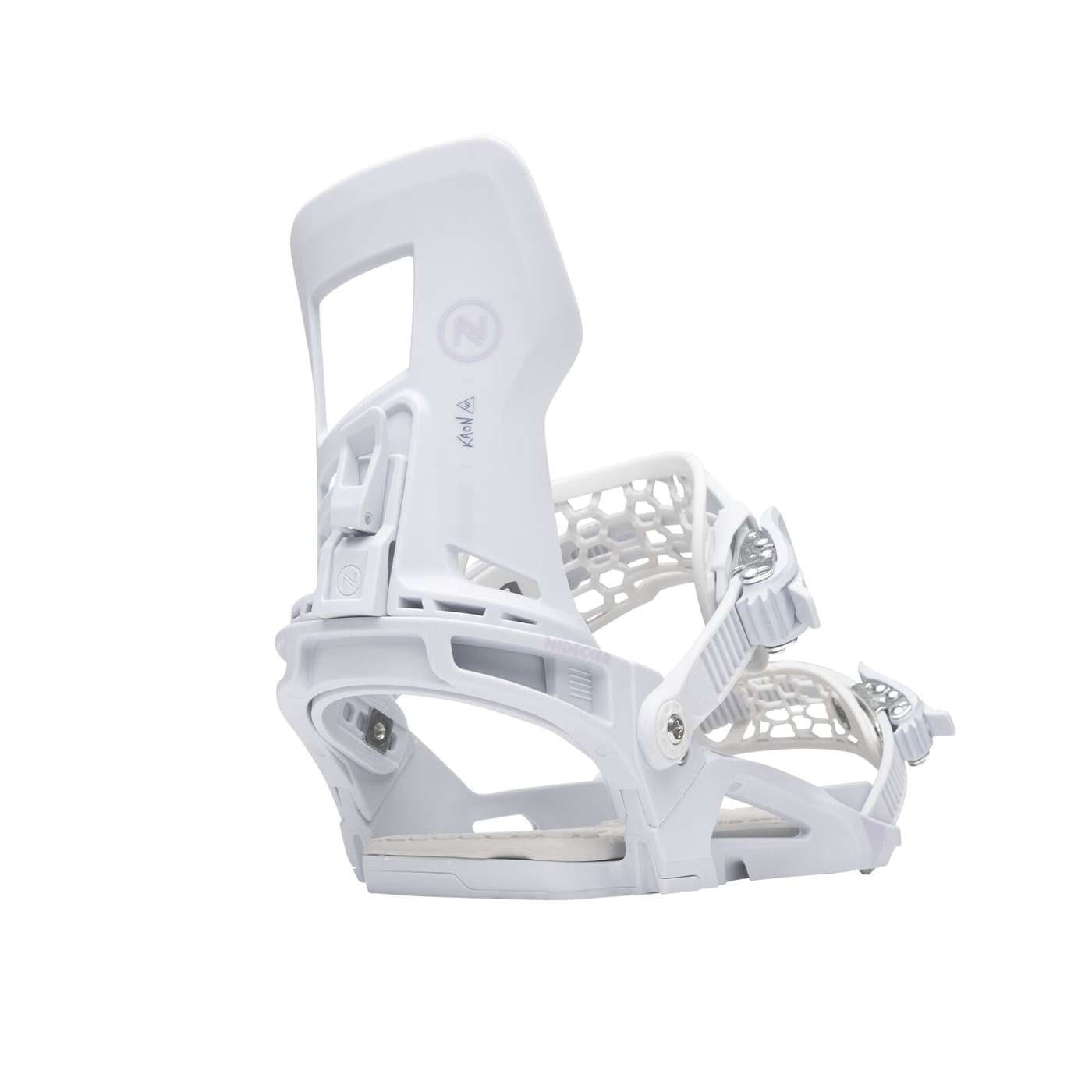 The Kaon-W is our top-of-the-line women’s binding, boasting lightweight materials, epic performance and peerless comfort. As part of our AsymFit™ system, the shape of the baseplate and hiback are a perfect match for any Nidecker boot. Glass-filled nylon construction keeps the weight down so it takes less effort to control your board or get airborne. With unique rockered corners and power beams built into the baseplate, the Kaon-W offers instant edge response, yet there’s enough lateral flex to encourage you to develop your individual style and keep it feeling accessible even to intermediate riders.Both the toe and ankle straps feature our innovative AuxTech®; a minimalist web design expands uniformly around your boot as you crank the ratchets, delivering amazing comfort and hold. Everything from the strap length to forward lean can also be quickly adjusted on the fly, and with full length cushioning underfoot you can look forward to a full day of shredding without any pain. Whether you’re tackling a tree line or pushing yourself in the park, the Kaon-W is more than up to the task.