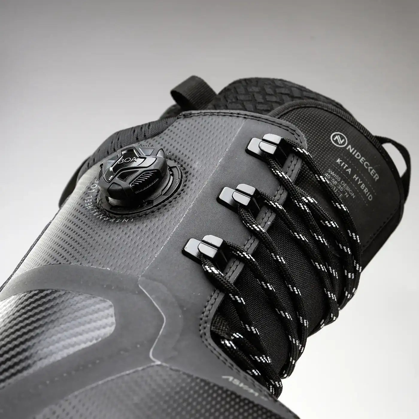 The BOA® side-dial controls an internal harness connected to the shell and tongue, delivering incredible three-dimensional foot hold with zero heel lift.